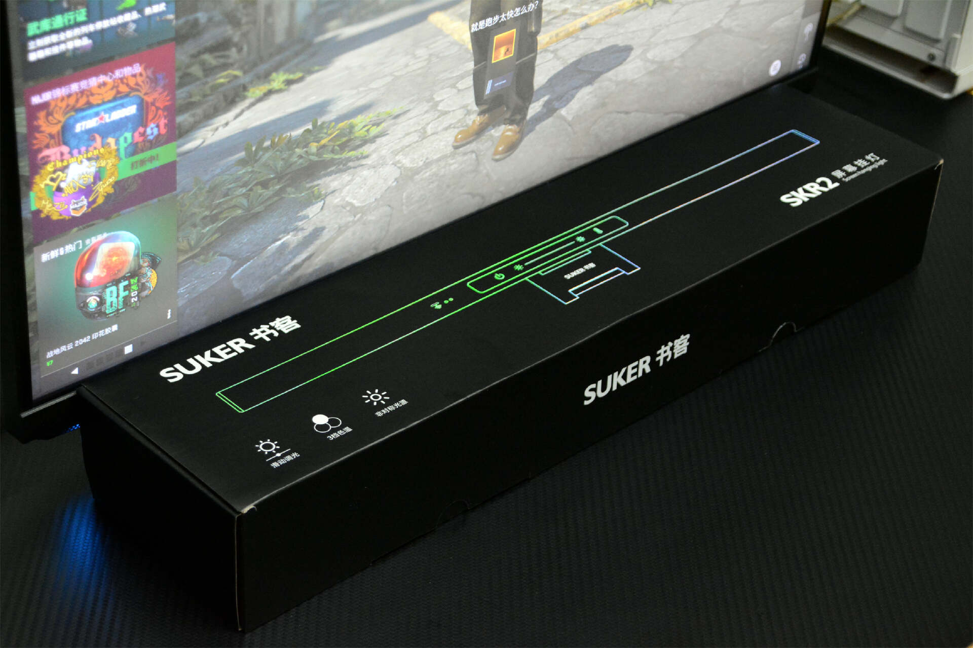 我是一个电脑玩家,白天要工作,偶尔玩玩手机,晚上才是自己的时间,台式电脑就是主打了,况且有大屏谁还玩小屏呢?刷剧、游戏大屏玩的才痛快,不过宿舍的灯光差点意思,视觉效果差,而且光线不可调,想摆个台灯?但是同事说可以考虑一下屏幕挂灯,省空间又效果好。那就整?