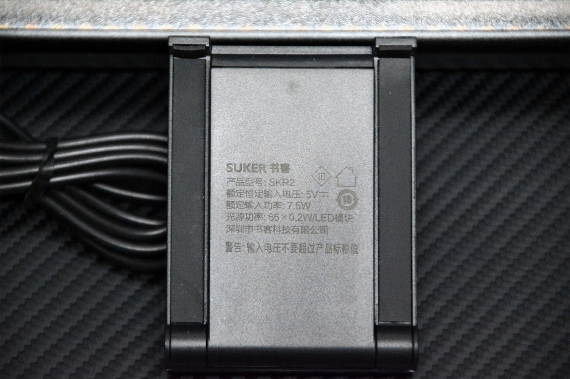 和一代不同,书客SKR2屏幕挂灯的电源线从TYPE-C接口改为内置了,这样也好,插头少了更耐用,也方便。只需要把USB-A接口插入充电器或者对应电源就OK了。