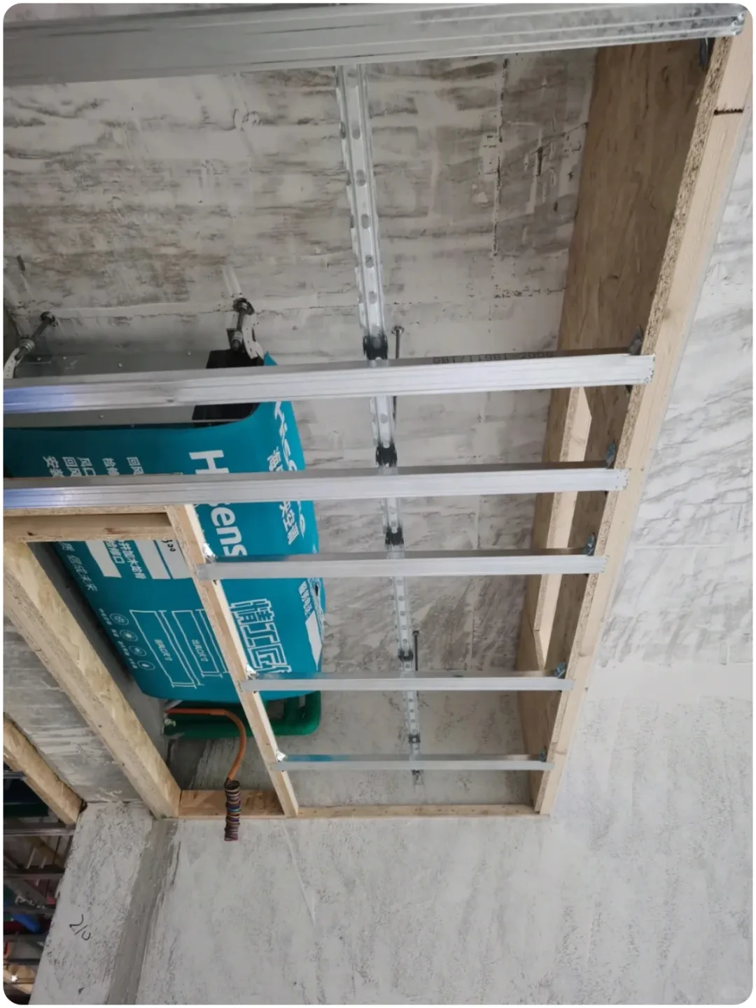 ▲风管机先安装,后做吊顶包住了风口,但是风口被吊顶遮住了一半,木工真是太不用心。