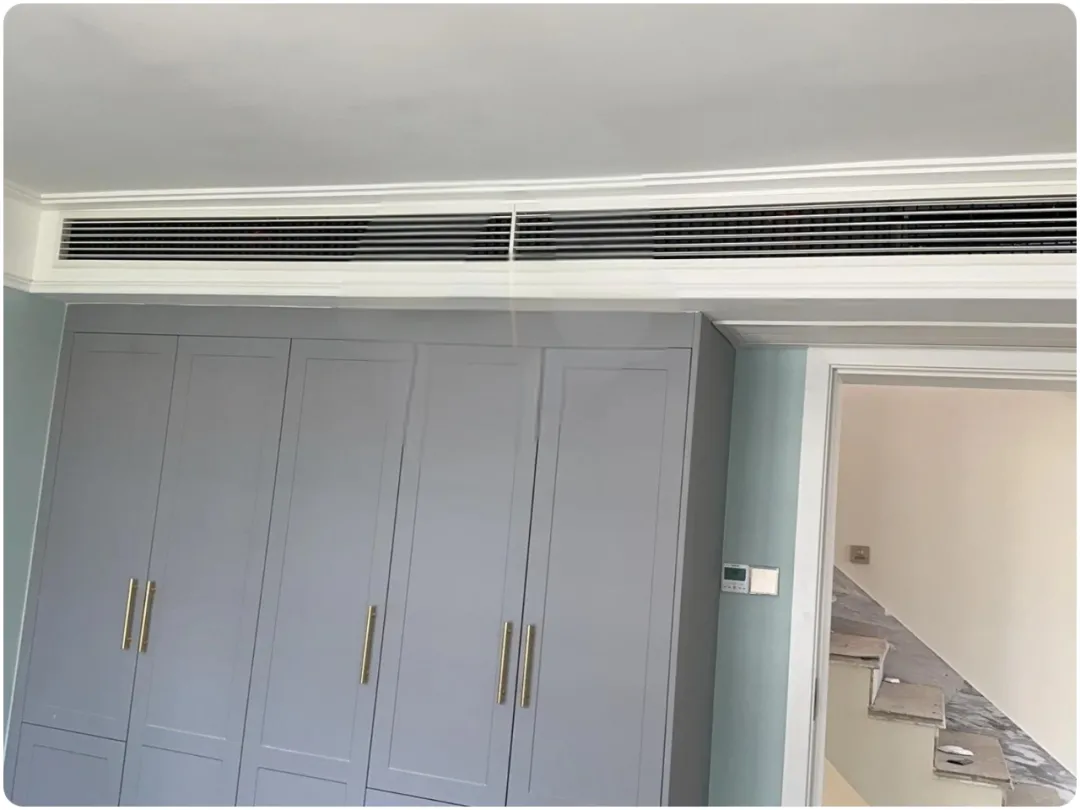 ▲上图空调采用下出下回的形式,即使不懂装修的人来说,也知道出回风距离太近不好;对于普通用户来说,侧出下回的安装方式最为稳妥,不容易翻车。