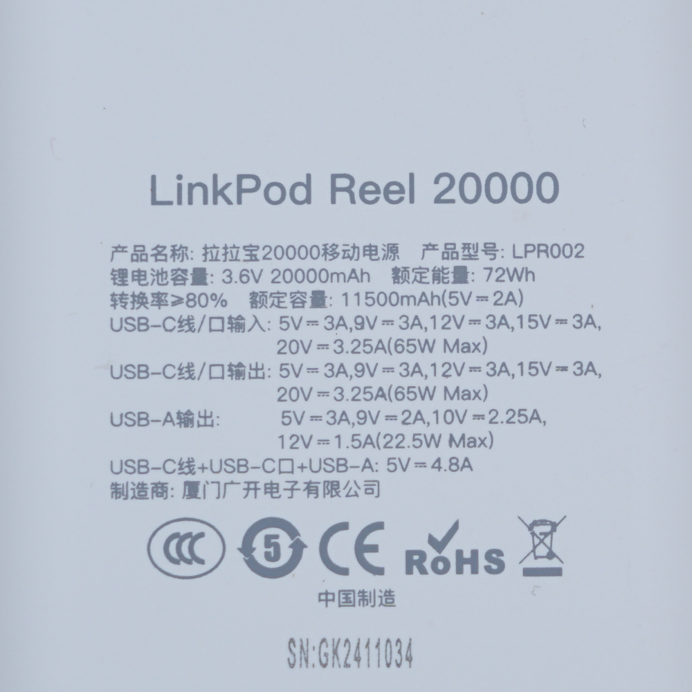 看到这个3C标识的那一刻,我顿时松了一口气,不用担心充电宝上不了飞机了,也不用考虑买新的充电宝了!这个3C认证标识是机身本体激光刻印的,并非容易作假的贴纸!可以看到它还同步通过欧盟CE/ROHS认证,全球差旅都兼容。