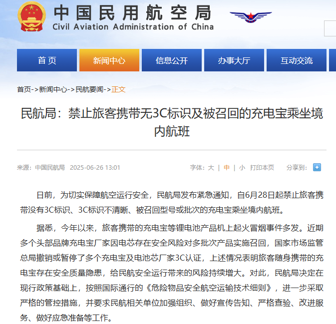 近期国内充电宝行业大震荡,中国民航局正式实施针对充电宝的新规,禁止没有3C认证标识、3C标识不清晰、被召回型号或批次的充电宝乘坐境内航班。