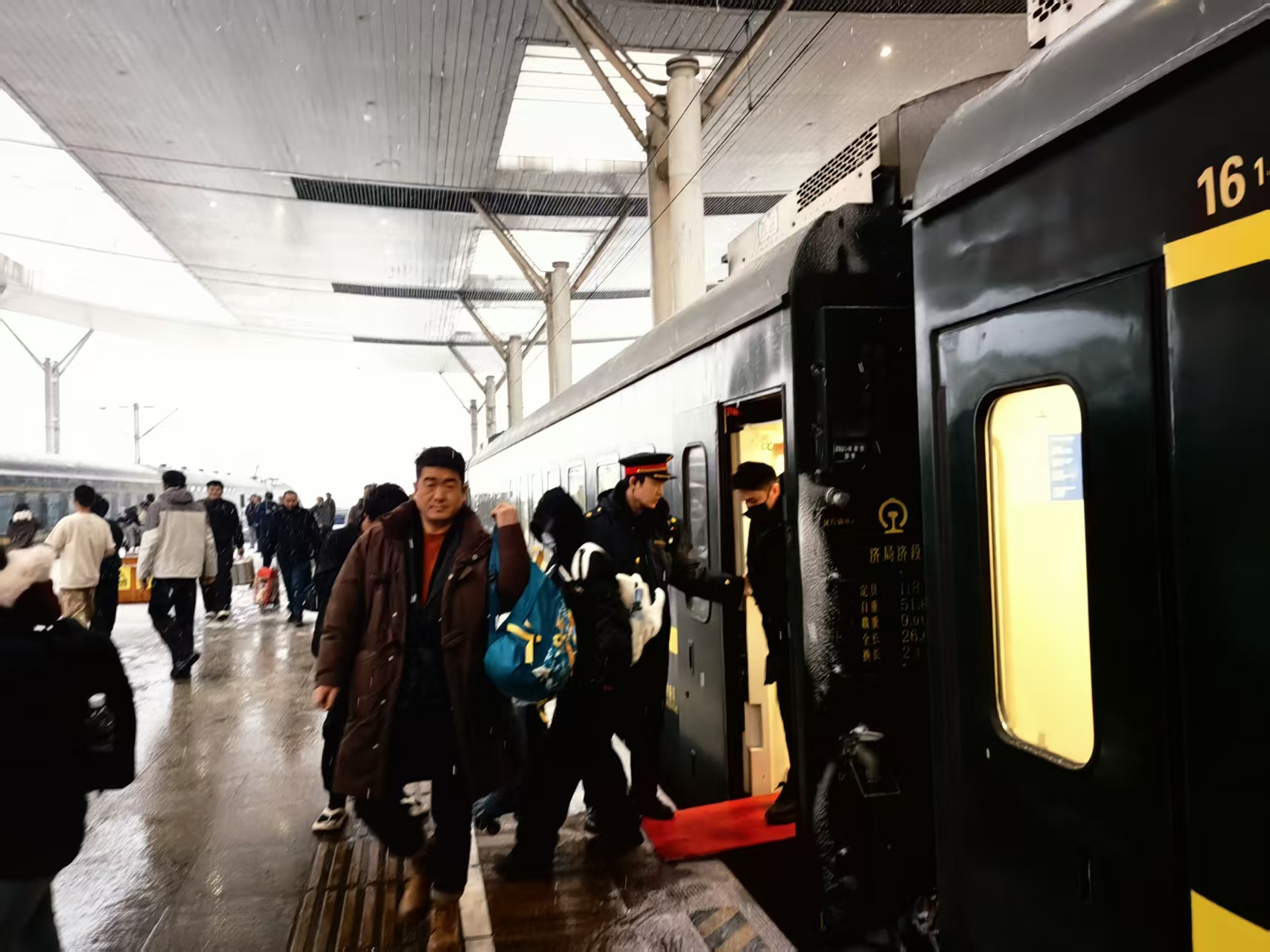 近日,华中、中原地区普降大雪,导致多地铁路站点积雪结冰。1月20日,运行里程达2600余公里的Z168/9次列车途经武昌、郑州等车站时,面临严峻安全考验。担当值乘任务的广州四组迅速启动应急预案,全体乘务人员坚守岗位,通过扎实的安全措施与细致的服务,护送1200余名旅客顺利出行。