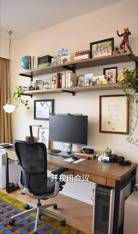 最有意思的是这个家的布局,三个房间被打造成主卧、女主人房和男主人房,各有各的天地。周葆元的工业风工作室里,冷硬的装修中摆着不少家人的照片,添了不少温情;徐晓晰的化妆间则挂满了自己的画作,艺术感拉满。