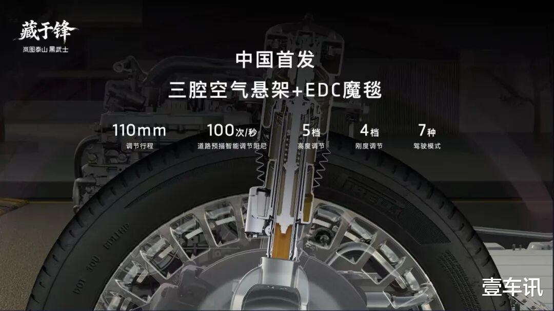 岚图泰山Ultra版被誉为中国汽车市场“9系旗舰SUV”的集大成者,除了搭载896线双光路图像级激光雷达,拥有五大安全冗余外,岚图泰山Ultra版的底盘硬件及舒适性配置同样达到行业顶级水准。底盘硬件方面,岚图泰山Ultra版采用前双叉臂+后五连杆底盘结构,前后副车架、摆臂、转向节、空悬支架等核心部件采用航空级铝合金,在保证结构强度的同时兼顾轻量化及耐腐蚀性。与此同时,岚图泰山Ultra版搭载中国首发三腔空气悬架,配合EDC魔毯底盘及双向16°后轮独立转向技术,带来百万级驾控稳定性。
