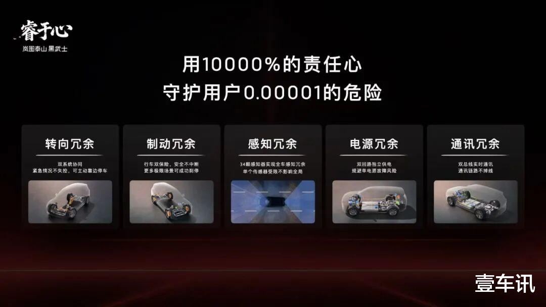 岚图泰山Ultra版基于全球首个具备L3技术能力的天元智能架构开发,深度融合岚图自主开发的青云行驶平台,采用行业顶级的五大安全冗余设计,涵盖转向、制动、感知、通讯、电源五大核心维度,通过多重备份机制彻底消除故障风险,满足L3有条件自动驾驶的安全要求,为用户出行筑牢双重保障。在央视直播测试中可以看到,岚图泰山Ultra版遇到驾驶者失能、前车掉落障碍物、异物遮挡视线等危机场景,能在第一时间做出最正确的驾驶决策,避免事故发生。在悬空、极窄或有异形障碍物的车位中泊车,岚图泰山Ultra能精准识别周围环境,高效安全完成自动泊车。