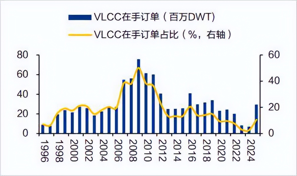 另一方面,2006年至2008年是VLCC交付高峰,这批船舶在未来三年将陆续超过20年船龄,进入拆解或运营不经济阶段,而同期新船交付量预计将远低于老龄船退出量。