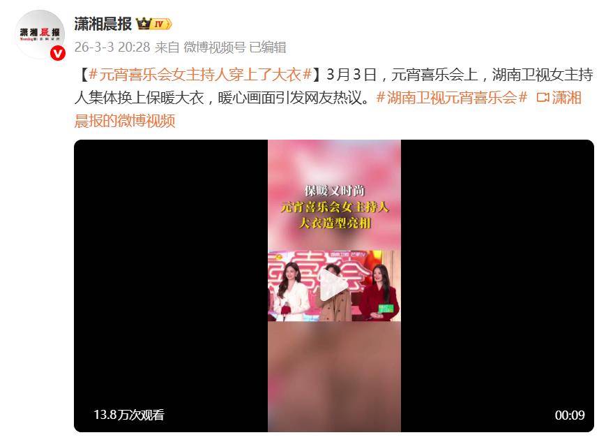 湖南卫视元宵喜乐会上,一场“着装革命”悄然上演:女主持人集体脱下单薄礼服,换上保暖呢子大衣亮相。这波操作瞬间引爆网络,收获“暖和又美丽才是真仪式感”的刷屏式好评,也让“告别冻美人”成了开年最暖话题。