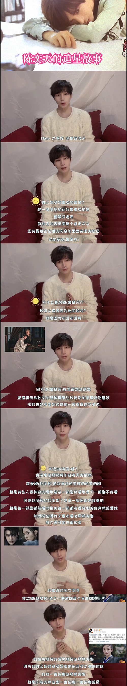 作为圈内出了名的“颖火虫”,陈奕天对赵丽颖的欣赏从来不加掩饰,甚至用“超级才华、超级努力、超级正能量”三个关键词,给偶像打出了满分评价。在他眼中,赵丽颖是“最值得学习的年轻演员”,更是“部部作品皆精品”的实力派,直言“有些人可能这部好看下部一般,但赵丽颖的剧,每一部都能打、每一部都百看不厌”。