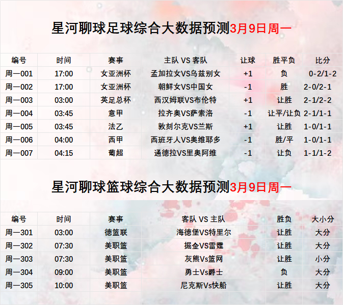2026年3月9日 【星河聊球篮球足球扫盘】五大联赛 美职联