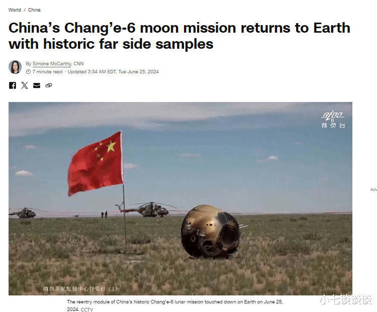 而就在嫦娥六号返回地球,将中国视为“太空竞争对手”的美国有什么反应呢?他们的媒体第一时间就报道了这个事情。