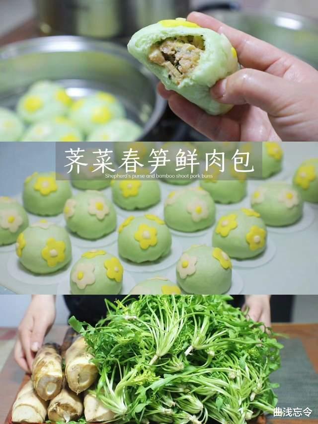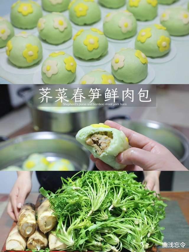 荠菜春笋鲜肉包|春天来了,包子也开花了!