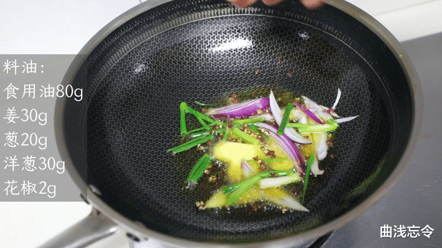 料油:食用油80g、姜30g、葱20g、洋葱30g、花椒2g