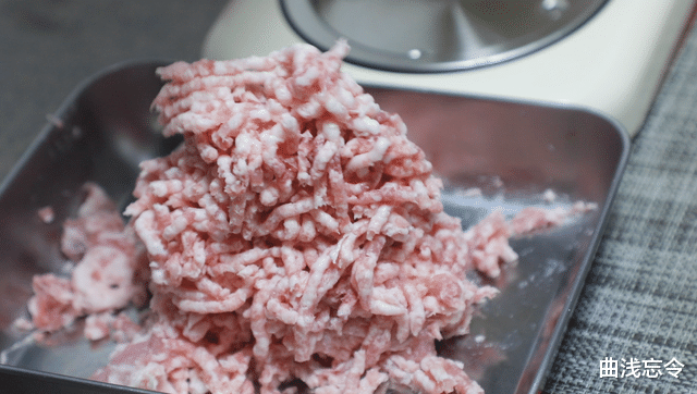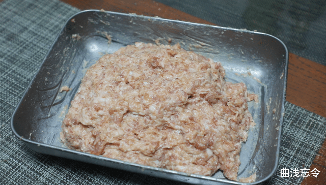 5、处理肉末:猪肉推荐肥瘦比例3:7,去皮剁成肉末或搅打成肉末。先加入适量盐,抓揉至黏稠状态,再加入调味料和葱姜大料水,葱姜大料水多次少量加入,每次都要把肉末搅拌到充分吸收水分之后再加下一次。至肉馅变得饱满嫩滑,能晃动的状态。