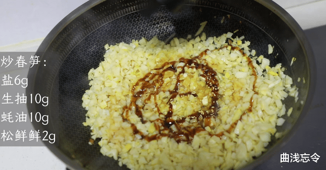 炒春笋调料:盐6g、生抽10g、蚝油10g、松鲜鲜2g