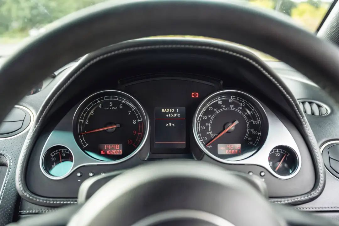 Gallardo SE拥有双色内饰,优质皮革上的滚边和缝线都与车身颜色相同,座椅的中间部分也采用与车身同色的软垫装饰,此外,黑色脚垫也带有与车身同色的边框。皮革方向盘、头枕上的兰博基尼徽章以及仪表板上的文字,确保您一旦坐在穿孔皮革座椅上,就会意识到自己置身于一辆特别的汽车之中。