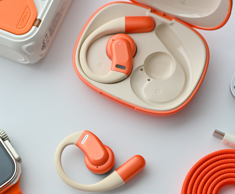 佩戴体验:这耳机戴着特别轻,单耳才 8 克,挂在耳朵上几乎没存在感。耳挂是镍钛液态硅胶的,柔软还有韧性,不管是大什么耳型都适配,剧烈运动也不会掉的。而且专门考虑了戴眼镜的人,耳挂能巧妙的避开镜腿,就算连续戴 8 小时,耳朵也没红印、不胀痛了,夏天出汗也不会闷着耳道,一直保持着干爽。
