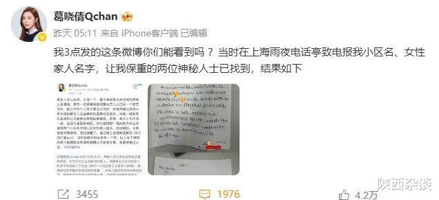 1月24日,葛晓倩在社交平台发文称,2024年10月,她接到匿名变声电话,对方精准掌握其家庭住址、家人信息,仅留下一句冰冷的“保重”便匆匆挂断,吓得她当即报警立案。