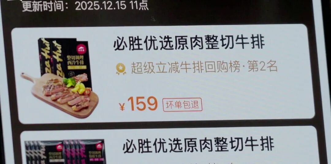 在必胜客的线上官方旗舰店,却有以“原肉整切牛排”为名的多款生牛排在售。