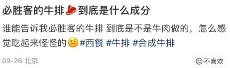 日前,有网友发现,在连锁餐厅必胜客吃到的牛排,和菜单上的图片差距巨大,口感也有些奇怪,这到底用的是什么肉?