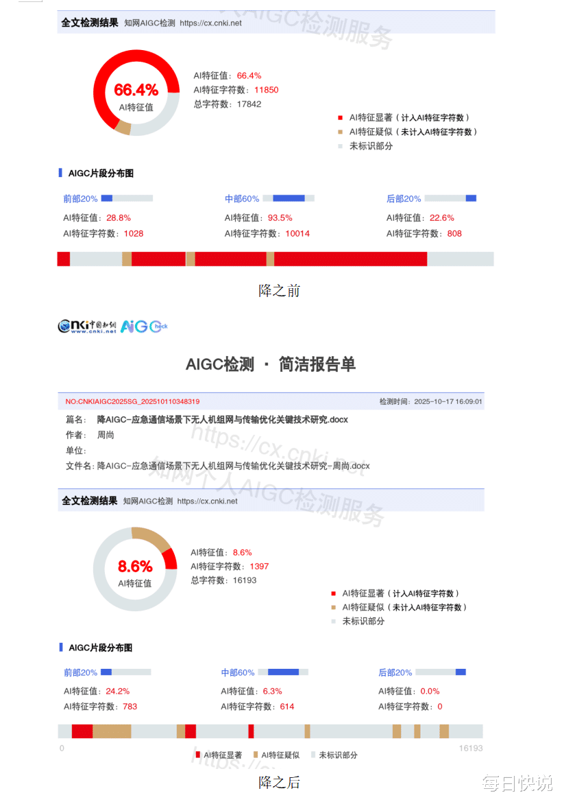 反例是某免费工具,只给个总 AI 率,标红段落全是专业术语,明显误判 —— 后来才知道它没优化学术语境适配。