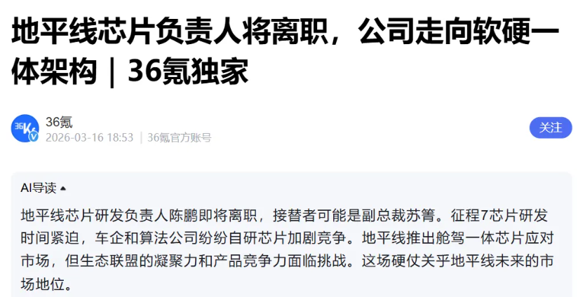 更重要的是,在当前智能驾驶芯片竞争加速的背景下,外界对地平线的预期也在逐步提升;也正因此,任何围绕研发体系与组织结构的变化,都会被放大为对公司节奏与能力的判断。