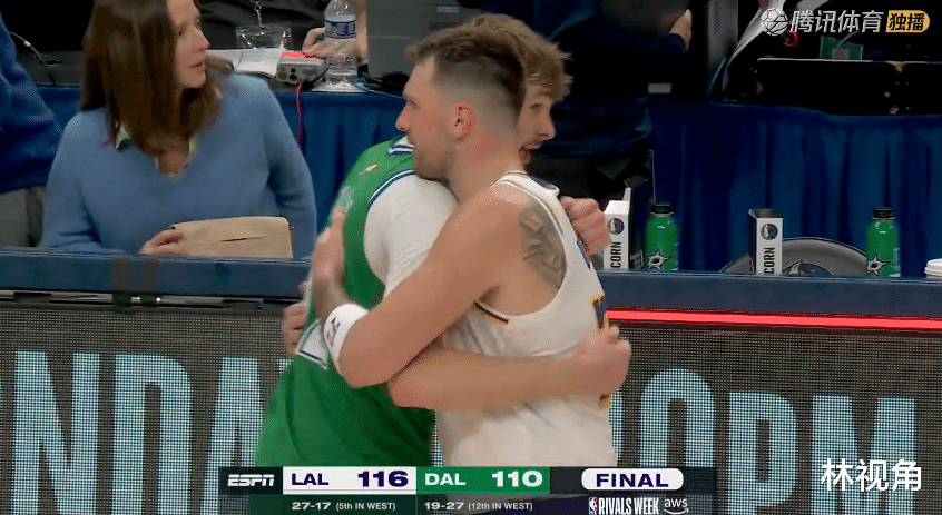 库班也走了过来,抱住东契奇,两人还简单笑谈几句,私交很好。