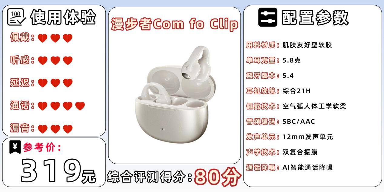 4、漫 步 者Comfo Clip耳夹开放式耳机