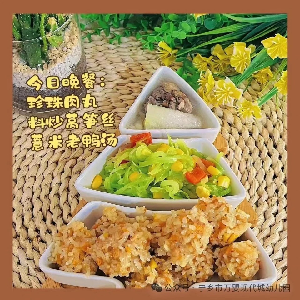 除了舒适的学习环境,安全营养的配餐也是我园最为重视的,万婴现代城幼儿园为了幼儿健康发展,食材当天新鲜配送,精心制定每日三餐一点的伙食搭配!