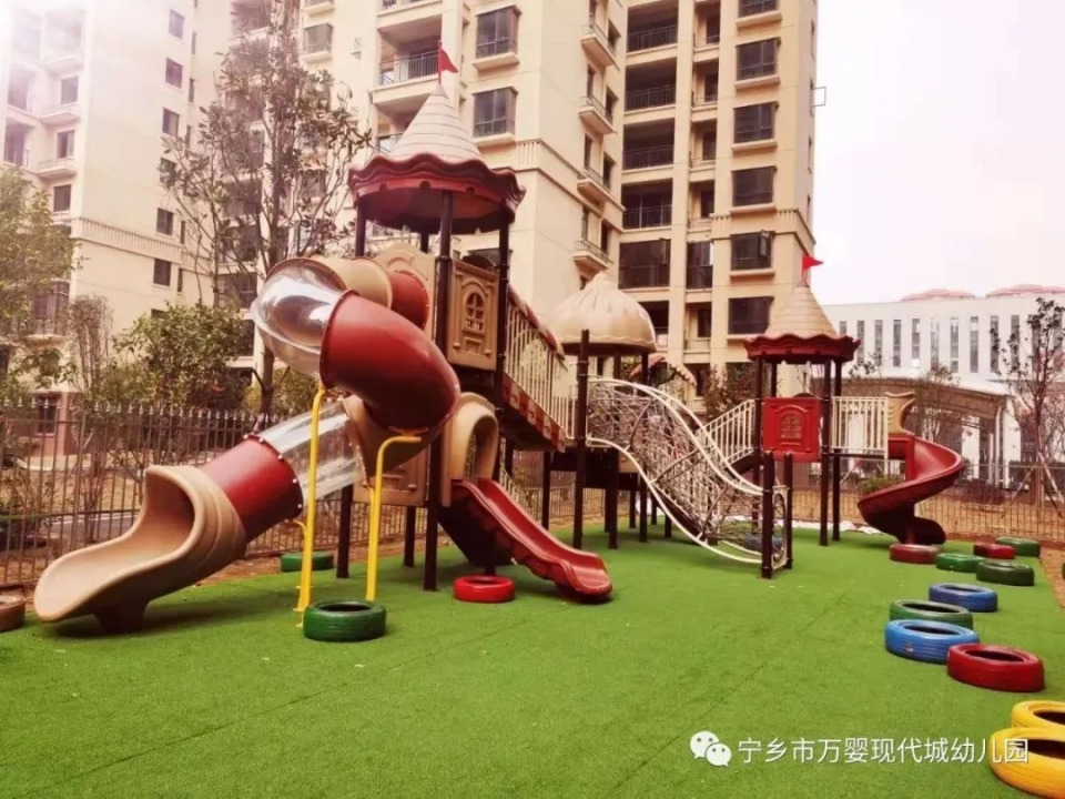 宁乡万婴现代城幼儿园是全国十佳幼教品牌万婴教育集团倾心打造的一所高起点、高品质的幼儿园。幼儿园坐落于宁乡大道东方现代城小区,占地约四千多平方米,建筑面积二千六百多平方米,户外面积一千六百多平米,拥有9个教学班。园内配有大型游乐设施、沙池、种植园地、大型彩虹操场、篮球场和足球场,每班都有独立的活动室、盥洗室、寝室,以及各种多功能教室,如:美工室、绘本馆、科学探究室、多功能室等,并配有监控系统和校园广播系统,为幼儿身心和谐发展创造了一个绿色、环保、充满生机的成长环境和游戏空间。