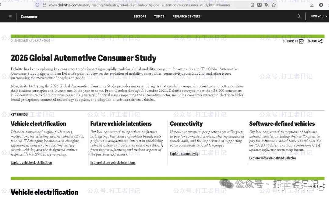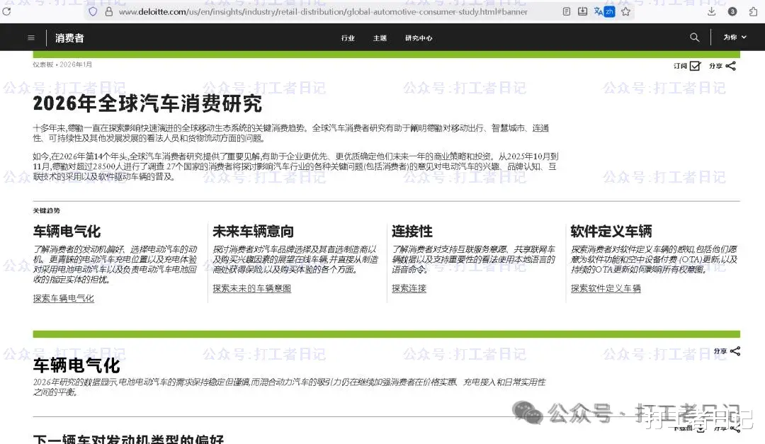 最近大名鼎鼎的德勤(Deloitte)发布了一个报告《2026年全球汽车消费研究》(英文原名《2026 Global Automotive Consumer Study》)。