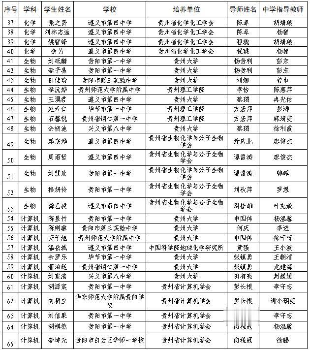 根据《2026年贵州省“中学生英才计划”实施方案》,在相关单位的共同努力下,现已完成导师推荐和学生遴选工作。经自愿报名、单位推荐和省级管理办公室审核,共有42位专家入选为导师;经中学推荐、市级选拔、导师面试等环节,共遴选65名学生入选培养,现将名单予以公布。
