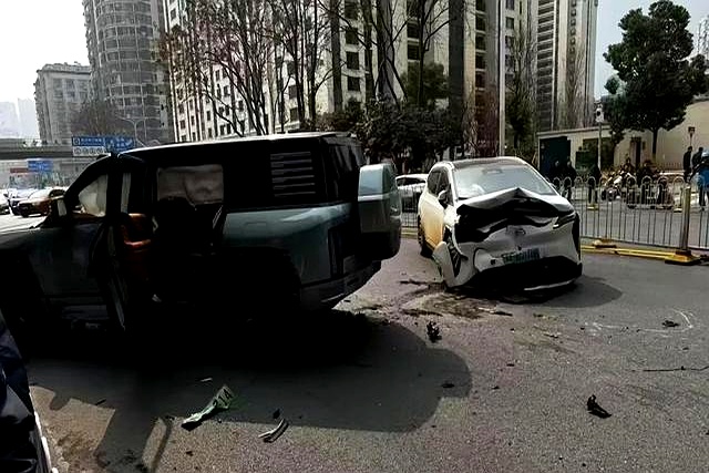 湖北武汉大智路,那可是个寸土寸金的地方。一辆仰望U8,硬生生冲过了马路中间的隔离带,和两辆车来了个“亲密接触”。好在,人