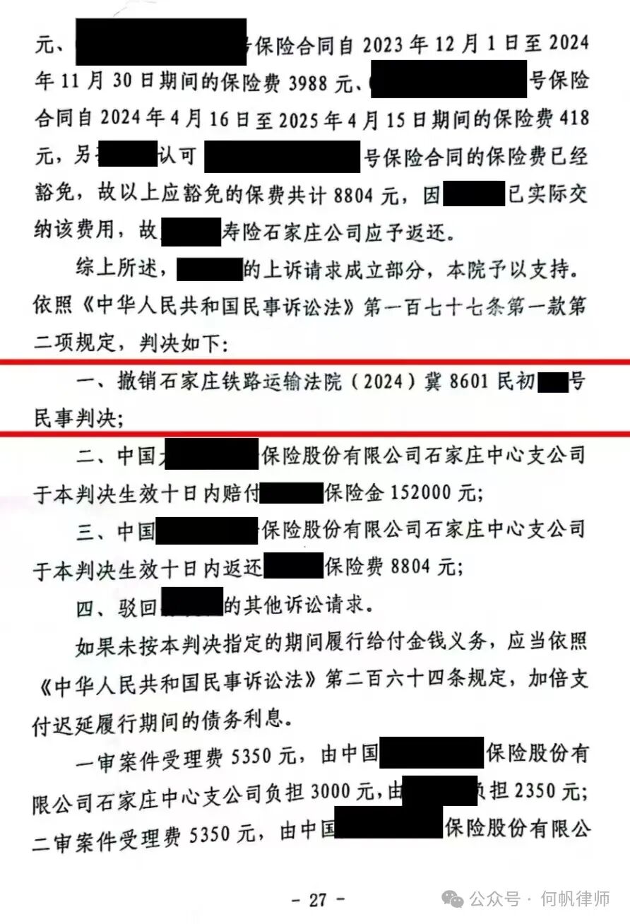 经过多次深入且艰难的沟通交流,何帆、陈伟律师的努力终于取得了显著成效。二审法院在综合考量各种因素后,作出了改判决定,支持了当事人大部分保险合同诉求,该判决书更是长达28页,充分阐述了双方观点及法院认定事实,为这一复杂的案件定分止争。这一结果不仅为当事人成功挽回了经济损失,维护了其合法权益,也在 CIN2 保险理赔争议的历史上留下了浓墨重彩的一笔。此案例为后续类似案件的处理提供了极具价值的参考范例,彰显了陈伟、何帆两位律师在复杂保险纠纷案件中卓越的专业能力与不懈的努力精神,同时也提醒整个保险行业在理赔判定过程中应更加注重医学发展与标准更新,以确保理赔的公正性与合理性。