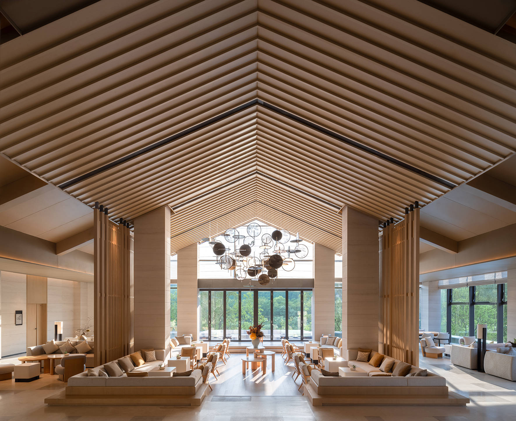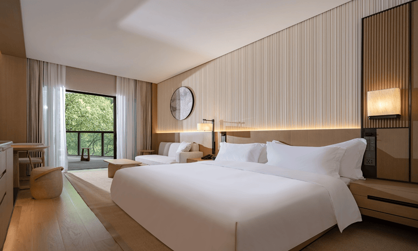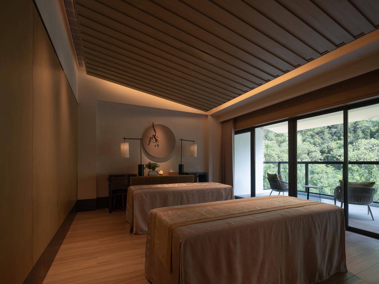 酒店设计汲取东方禅意中的“留白”与“呼吸感”,以素雅线条、通透落地玻璃,将山光、水色、晨雾与夕照纳入室内空间。依山而建,得隐逸之格局;临溪而居,获灵动之生机。185间客房及套房均配备全景落地窗与私人阳台,让您随时沉浸于仙居的四季画卷。