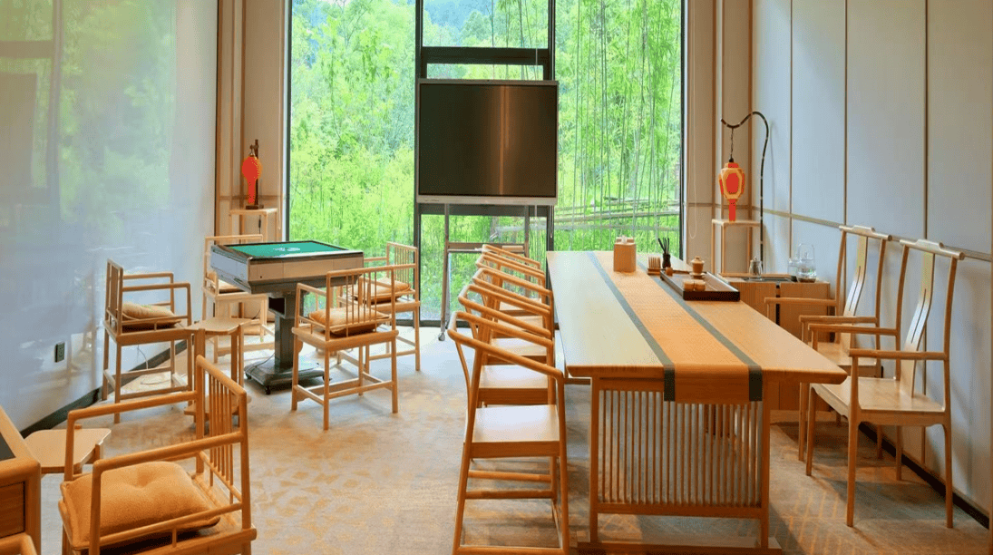 每一间客房皆设计简约而温暖,窗外是连绵的青山与蜿蜒的溪流。在这里,时间仿佛放缓,只需静坐阳台,品一盏清茶,便可与山水共呼吸。