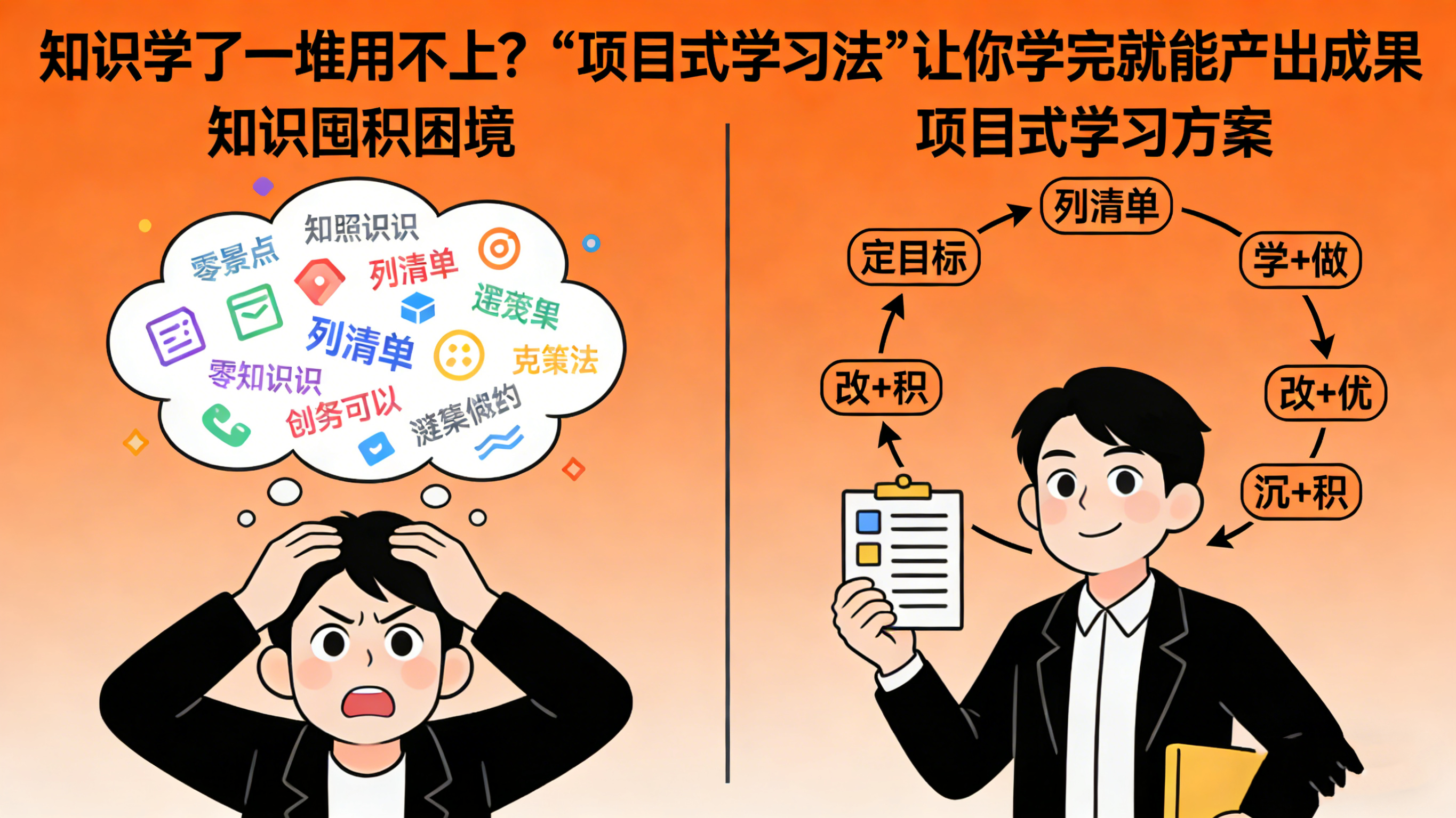项目式学习法,就是帮你跳出“知识囤积怪圈”,把学习的重心从“输入”转移到“产出”,让每一次学习都能落地为成果。它不需要你有过人的天赋,也不需要你花大量时间,只要你能围绕项目“边学边做、边做边优”,就能让知识真正为你所用。