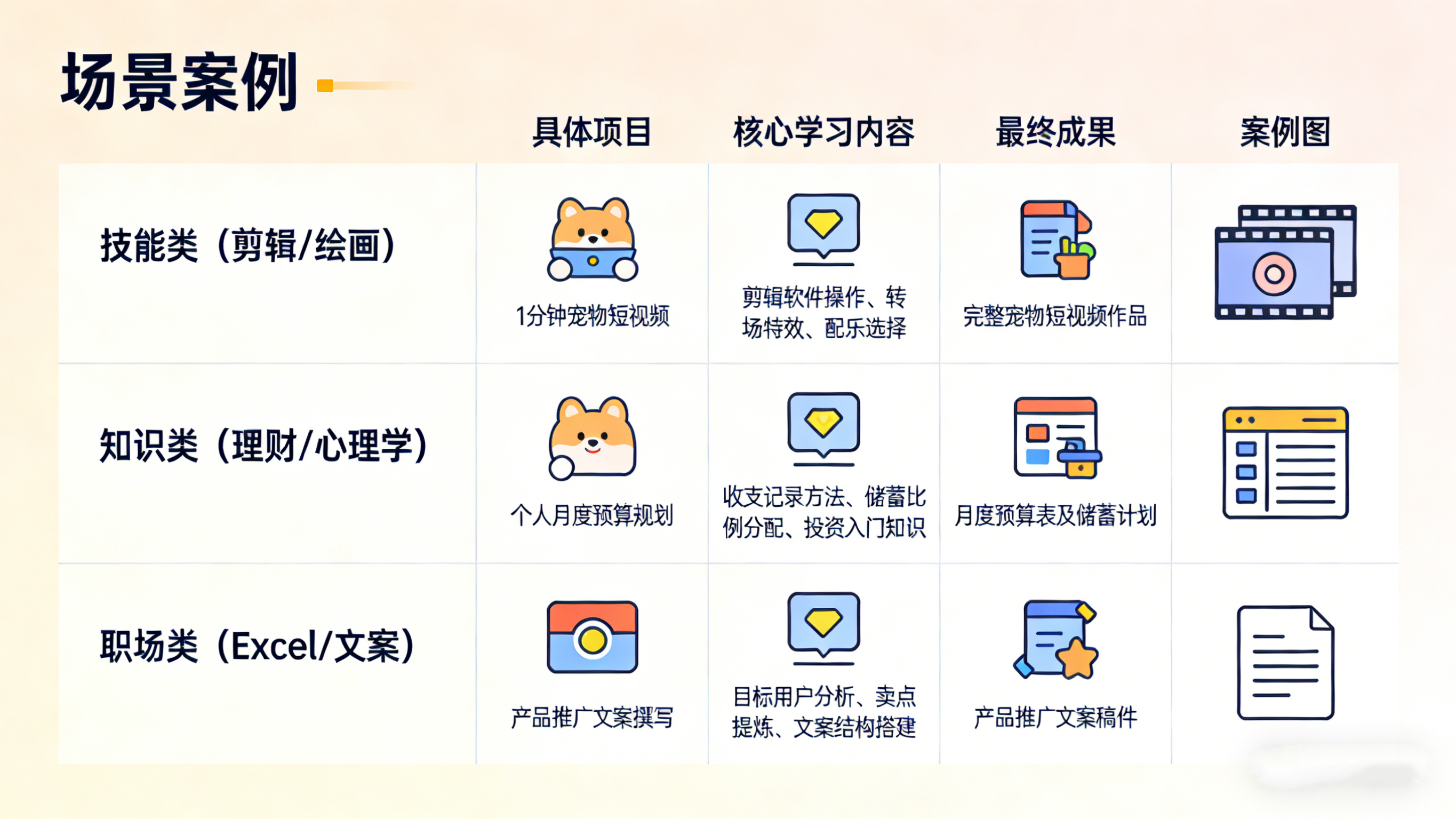 产出成果,积累核心竞争力:每完成一个项目,就能获得一个可展示的成果(比如一篇文案、一个短视频、一份理财计划),这些成果不仅是学习的证明,还能成为个人竞争力的一部分,比单纯的“知识储备”更有价值。