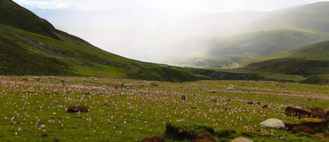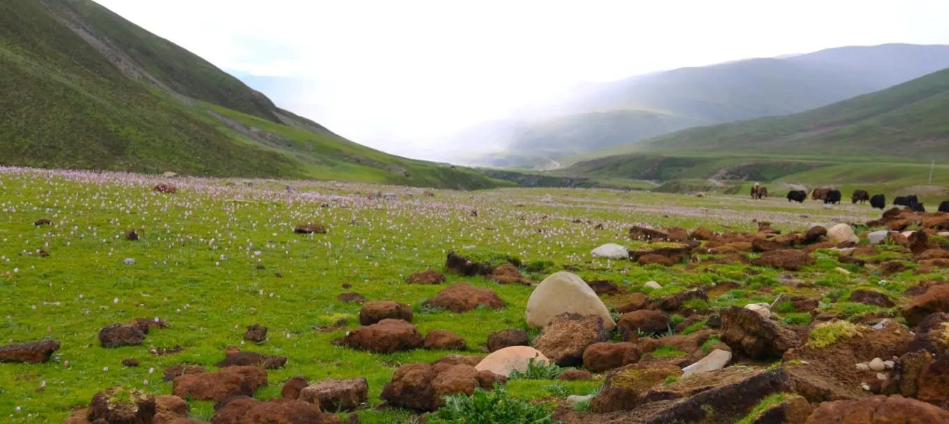 绿色牧草,红色花朵,牦牛的家园(红花绿草)