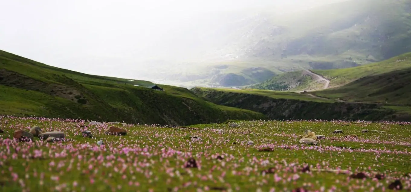 繁花似锦用在这里的草原有点不太贴切,真的不知道用什么形容词来形容,草原星星点点的花草让相机的镜头也不知道如何自动对焦,太