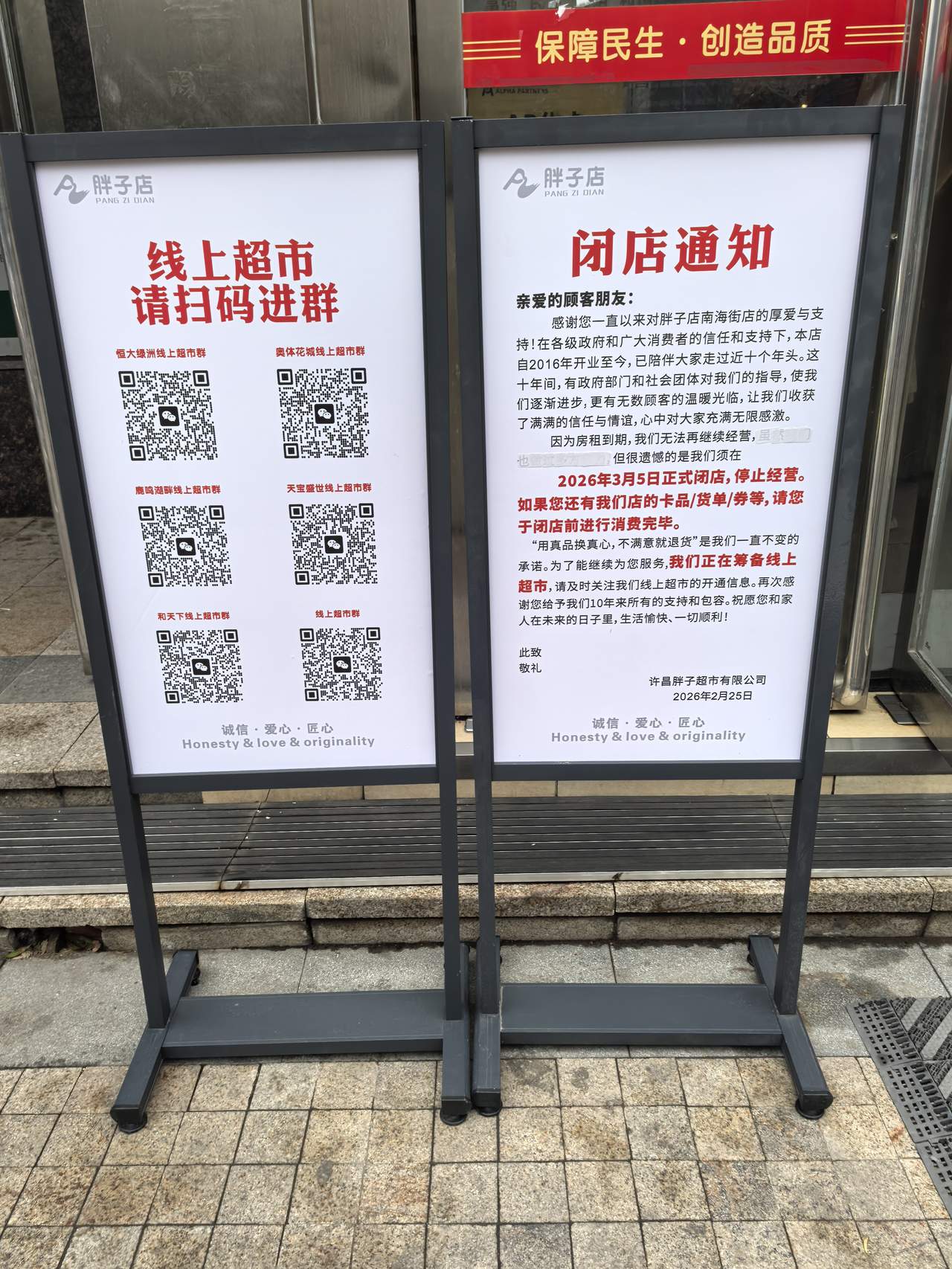 听说南海街胖子店闭店了,挺失落的,疫情封控时没少偷跑出去到这家店购买物资,它是模仿胖东来最用心的一家店,试举一例,这个店每天也有特价生鲜,都是有瑕疵的,但人家收银员还会检查一下,危害健康的就不结账了。反观其他小超市都该扔垃圾箱了还在大处理,没人买还给超市带来浓浓的腐败味道。