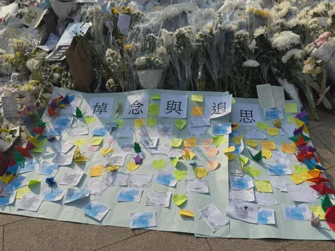 香港特区政府在火灾后迅速在18区设立了悼念中心,供市民签署慰问卡、献花。但许多市民仍选择亲自来到大楼附近,走到离灾场最近的地方。“他们想亲眼看看,到底有多严重。”
