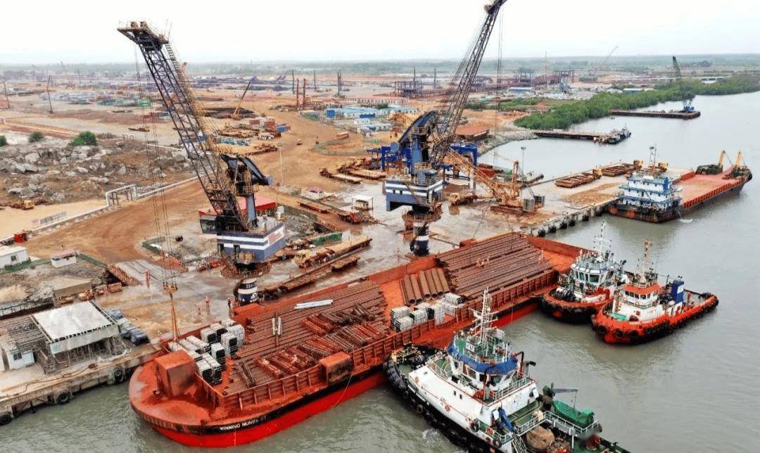 2015年,中国山东魏桥创业集团联合新加坡韦立国际、烟台港集团等组成“赢联盟”,创造性地解决了运输难题。他们采用河港接驳外海锚地的运输方式,实现了矿石快速出海。