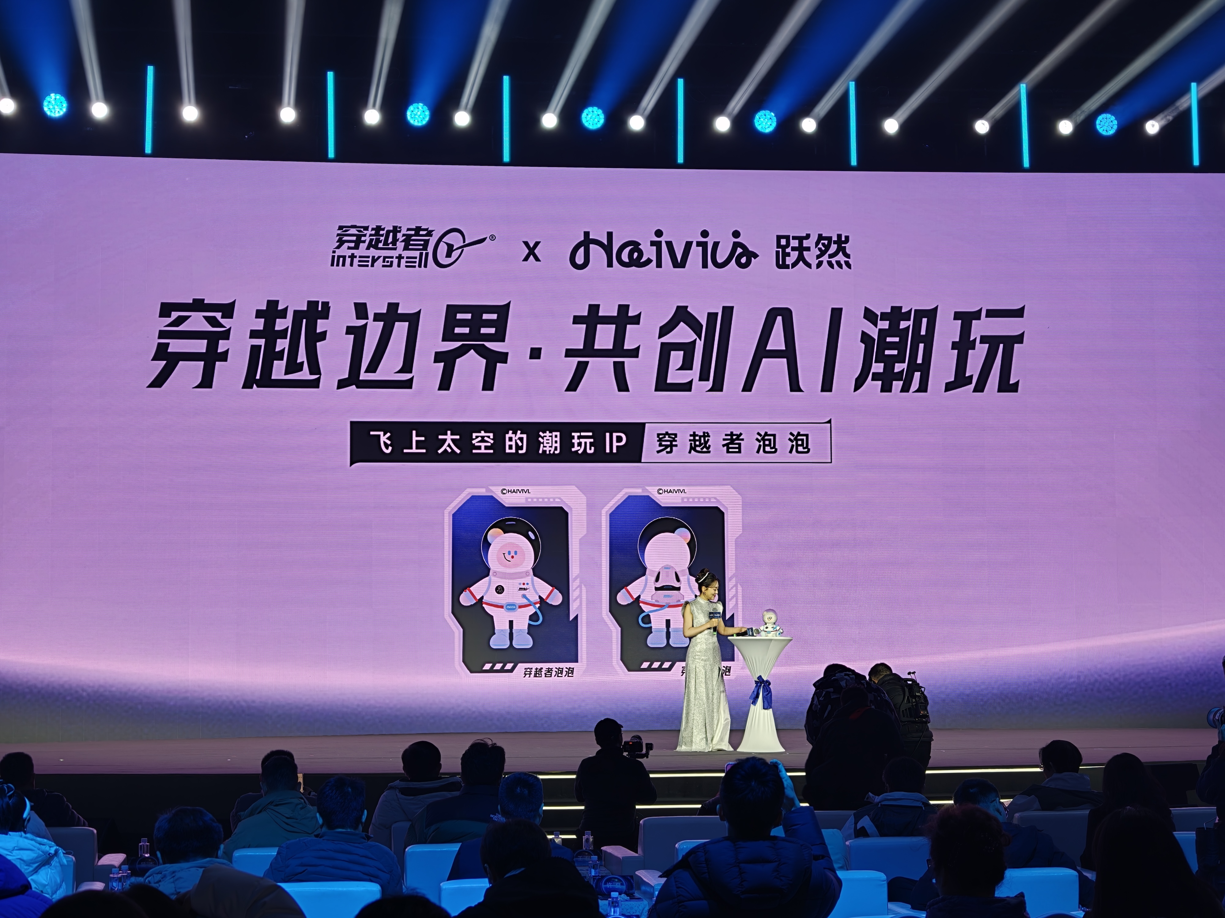 比如在发布会末尾,穿越者就和 Haivivi 公布了其 AI 共创潮玩计划,发布了「飞上太空的潮玩 IP」——穿越者泡泡。同时,穿越者也提到了「万物上太空」计划,消费者支付一定费用后,可以将自己的玩偶、或其他有纪念意义的物件当作载荷发往太空。