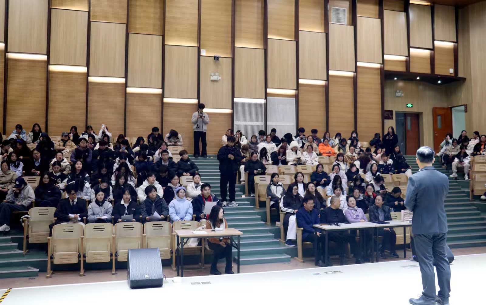 苏州广电总台高级播音主持,苏州市朗诵协会专家指导于心老师为现场的200多位同学作了专题讲座,讲解了好声音的标尺、如何认识自己的声音、如何给声音美颜、如何让声音更具亲和力等关于魅力声音形成的基本方法。播音主持专业的六位同学上台做了朗读示范,于心老师结合每一篇文稿,进行一对一点评,帮助同学们理解如何以文字内涵调动自身情感,并以语言技巧二度创作,最终准确传递情感的创作过程。同学在聆听中理解,声音和语言的锻炼将是传递思想和情感,赋能未来的重要路径。
