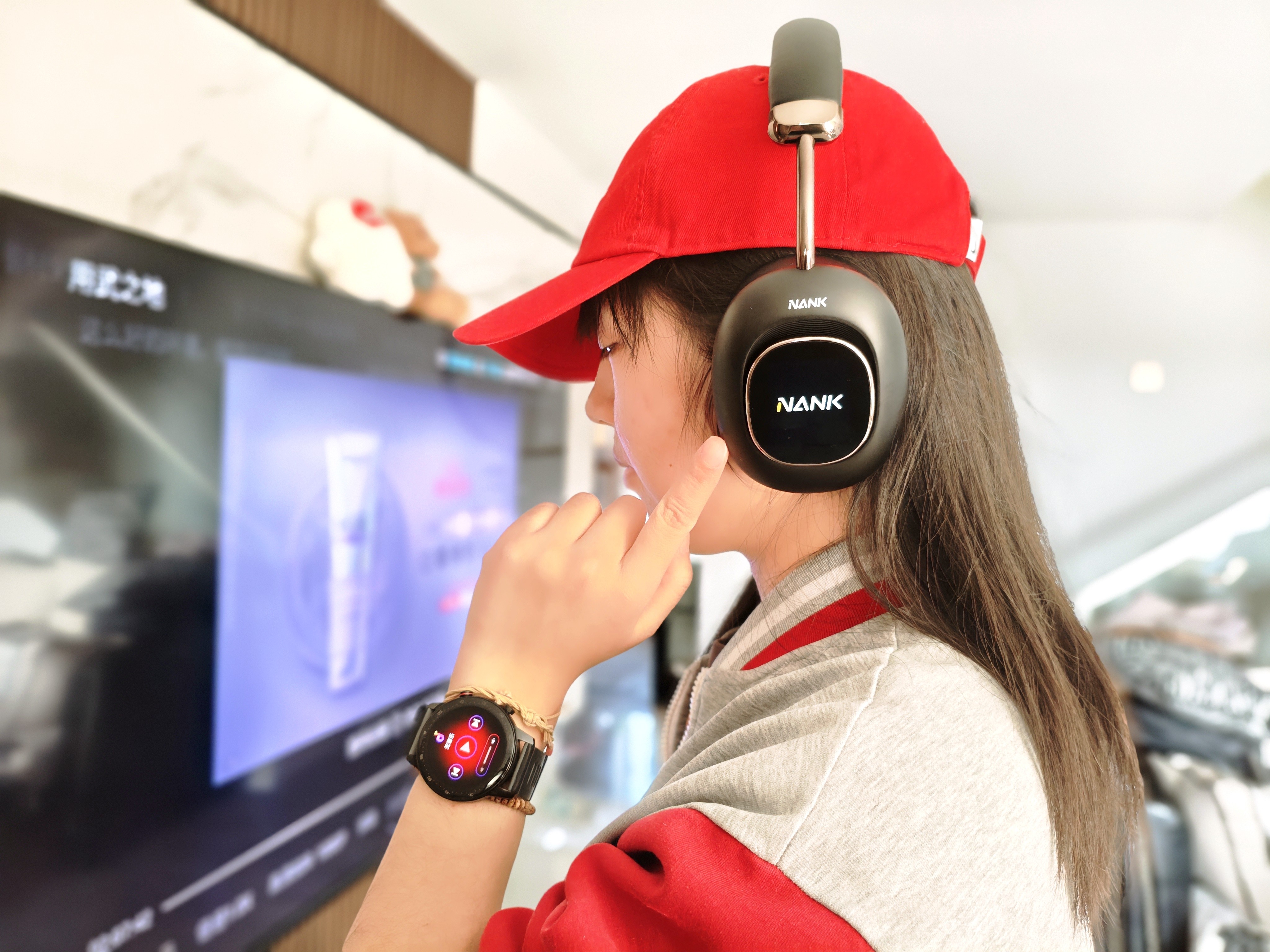 南卡Show最具颠覆性的设计,当属行业首款可拆卸智能交互灵动屏。磁吸式双屏贴合耳罩,单手即可完成拆卸与安装,1.3英寸OLED屏显示清晰、触控灵敏无卡顿,彻底让耳机“有了表情”。这块屏幕绝非华而不实的噱头,而是真正的随身遥控中枢:五大专属操控功能覆盖音乐、拍照、视频全场景,切歌调音量不用掏手机,户外拍照时一键遥控解放双手,双屏还能实时显示电量、降噪模式,更可通过专属APP自定义动态壁纸,让耳机成为独一无二的个性标识。更贴心的是,灵动屏支持单独充电,即便屏幕没电,也完全不影响耳机正常听音,细节设计尽显用心。