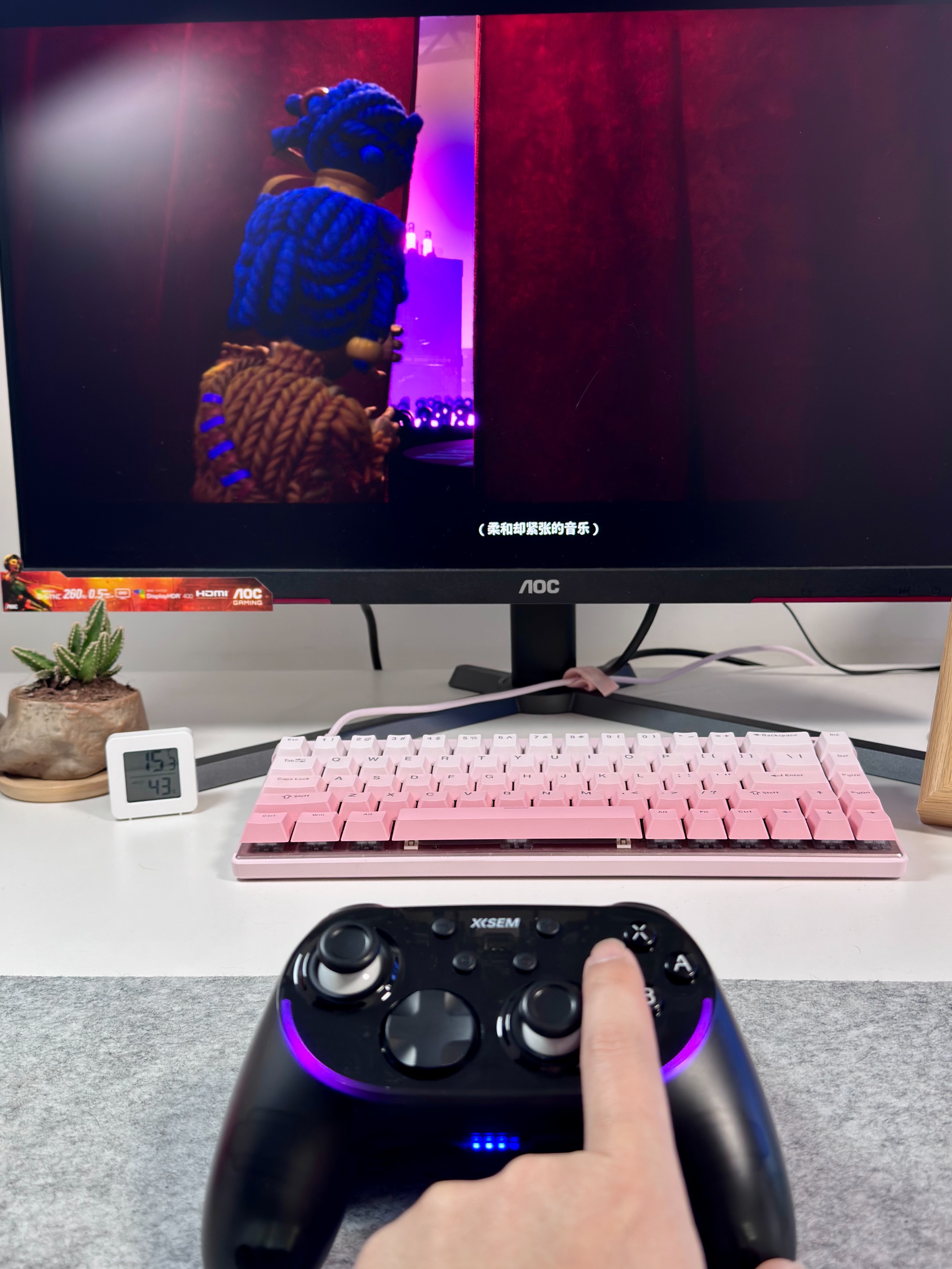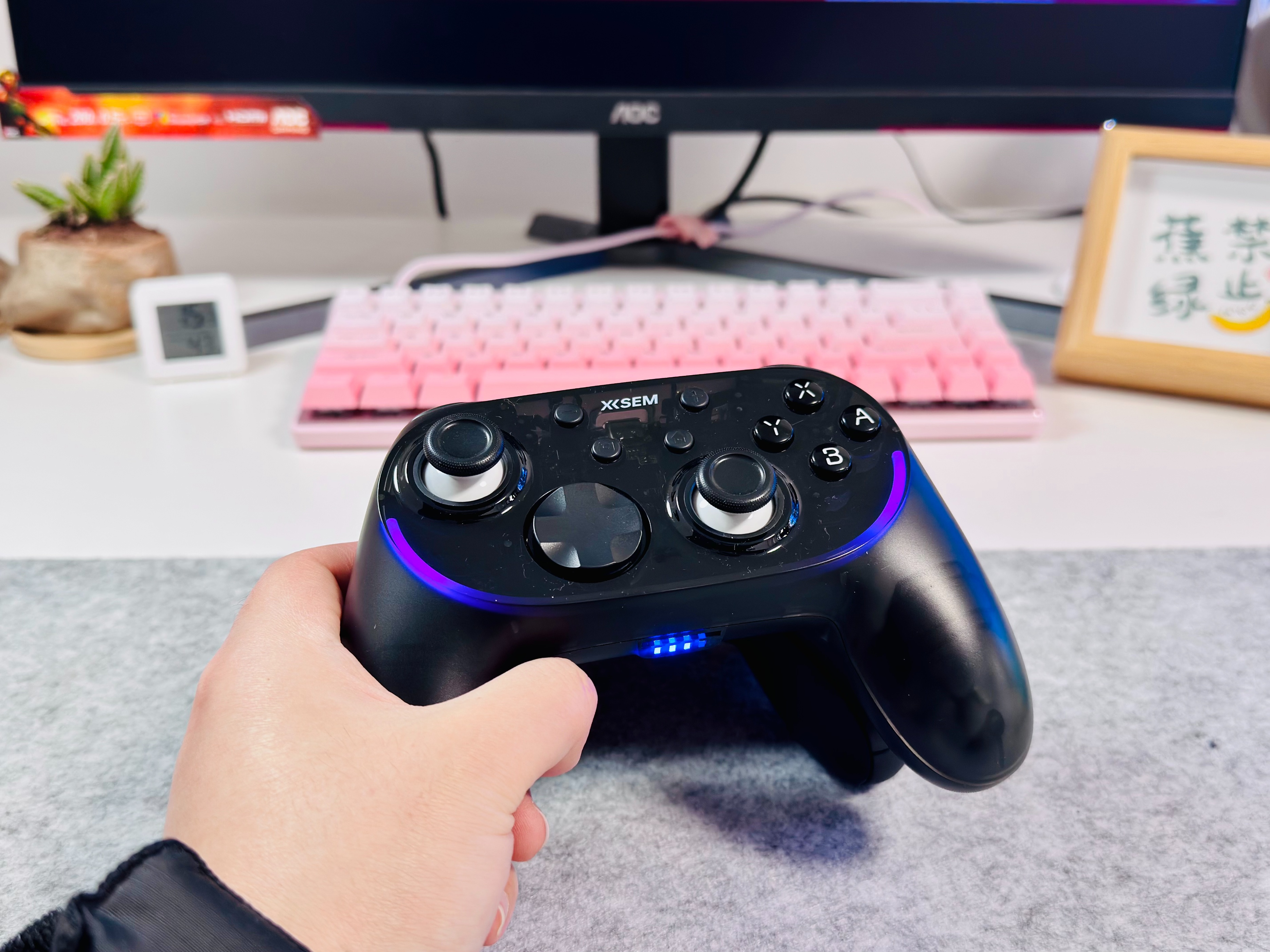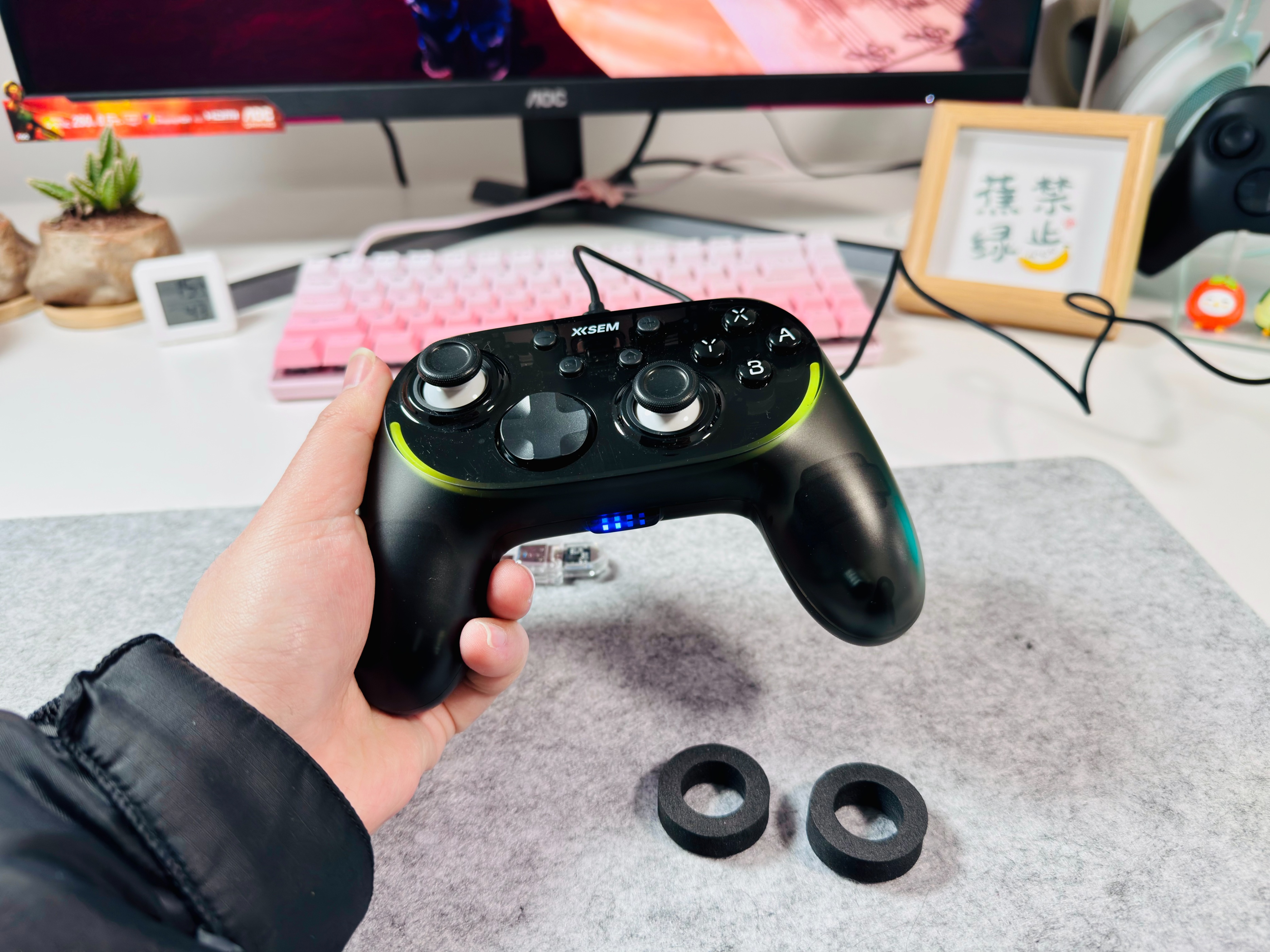 还有就是我更喜欢西圣GC1的呼吸氛围灯,多档模式可调,而且颜色也可以调节,非常像键盘呼吸灯,适合家里有电竞桌,然后还喜欢拍照显摆的人来用。不仅平时打游戏能用到,而且当个会发光的小摆件也非常不错。