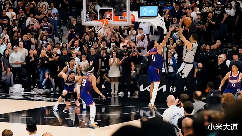 防守端,他的臂展像‘禁飞区的围栏’:太阳队的每一次内线进攻,都要先看看文班亚马的位置——他全场3次抢断,1次盖帽,让太阳队的命中率下降了8%。