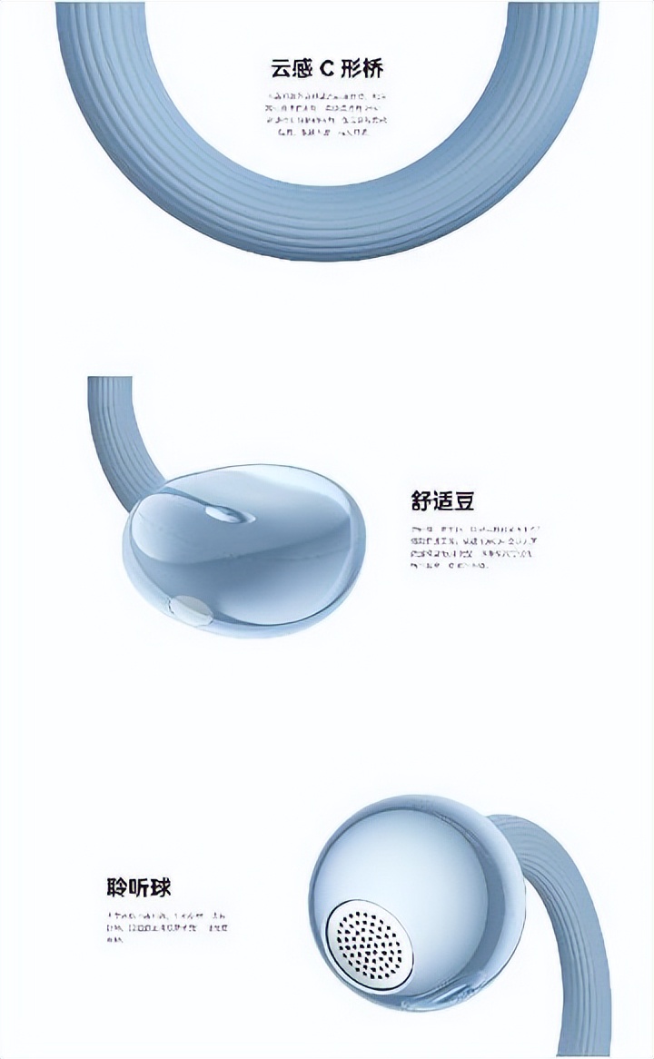首先耳机本身采用轻量化设计,单耳重量只有5.1g,比上一代更轻,轻到让你忘记它的存在那种。其次云感C形桥采用亲肤液态硅胶和高弹性记忆金属,能自适应不同耳型,夹持感柔软且稳固,完全不会夹耳。且舒适豆体积缩小12.5%,环耳设计更贴合耳廓,不管运动时跑步骑行,还是上下班通勤,都非常稳固。