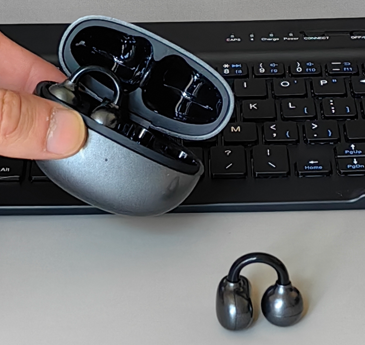 佩戴体验:单耳重量6.5g,重量控制适中,上耳无明显负重感,采用创新柔性TPU C形过桥设计,内置高韧性记忆材质,可随意弯折不变形,弹力柔和自适应,是经过多耳膜调校的